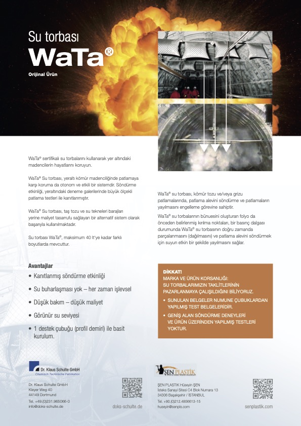 WaTa® Su torbası, yeraltı kömür madenciliğinde patlamaya